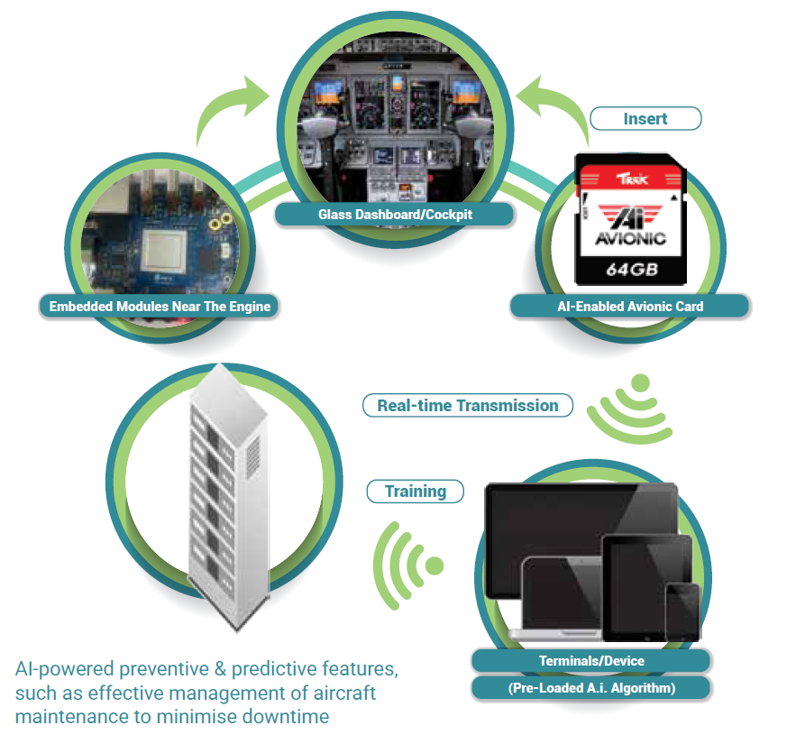 A.I. Avionic Solutions is an integrated ecosystem that combines advanced hardware, intelligent systems, and real-time data analytics to enhance aviation safety and operational efficiency. By connecting onboard modules, ground-based servers, and user devices, the solution enables predictive insights, proactive maintenance, and seamless data-driven decision-making.